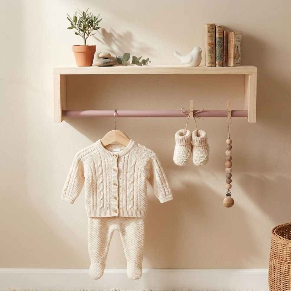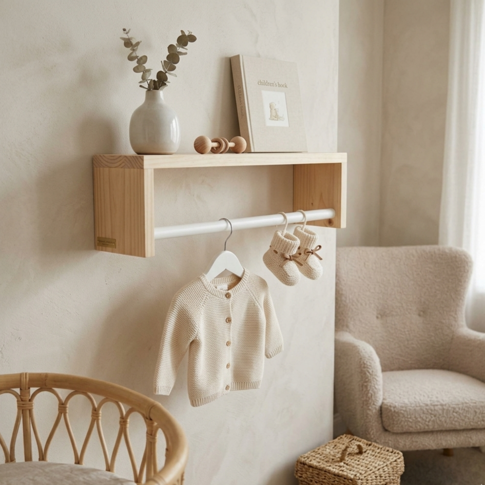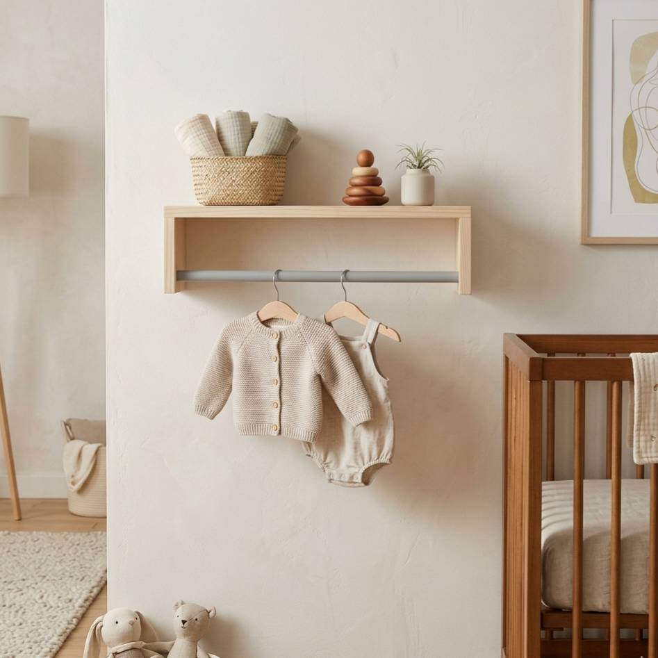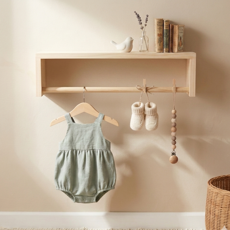This versatile shelf can be hung up in 2 different ways. One way being used as a bookshelf, and the other for displaying nursery décor and hanging baby’s clothes up for the day. Why not get 2, hang them next to each other and boast practicality and modern chic in your little one’s nursery?