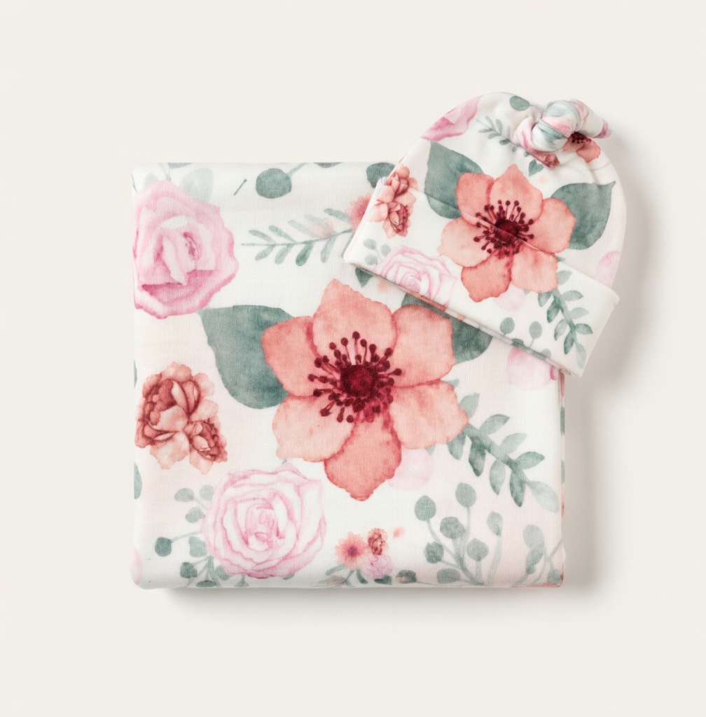 Pink Florals Swaddle & Beanie Set